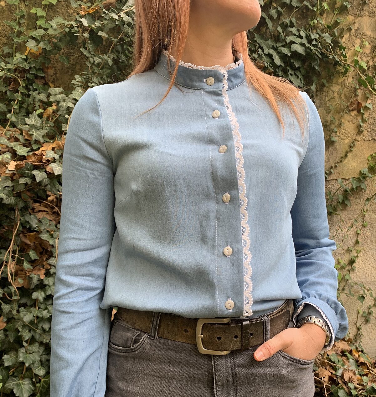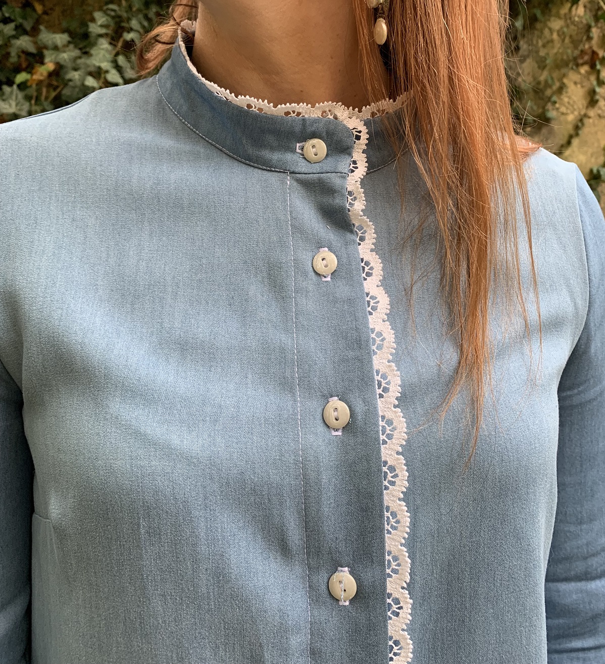 Le tissu est un chambray des Coupons de St Pierre et la dentelle est un galon que l’on m’a offert.