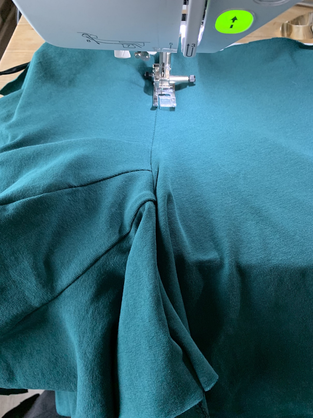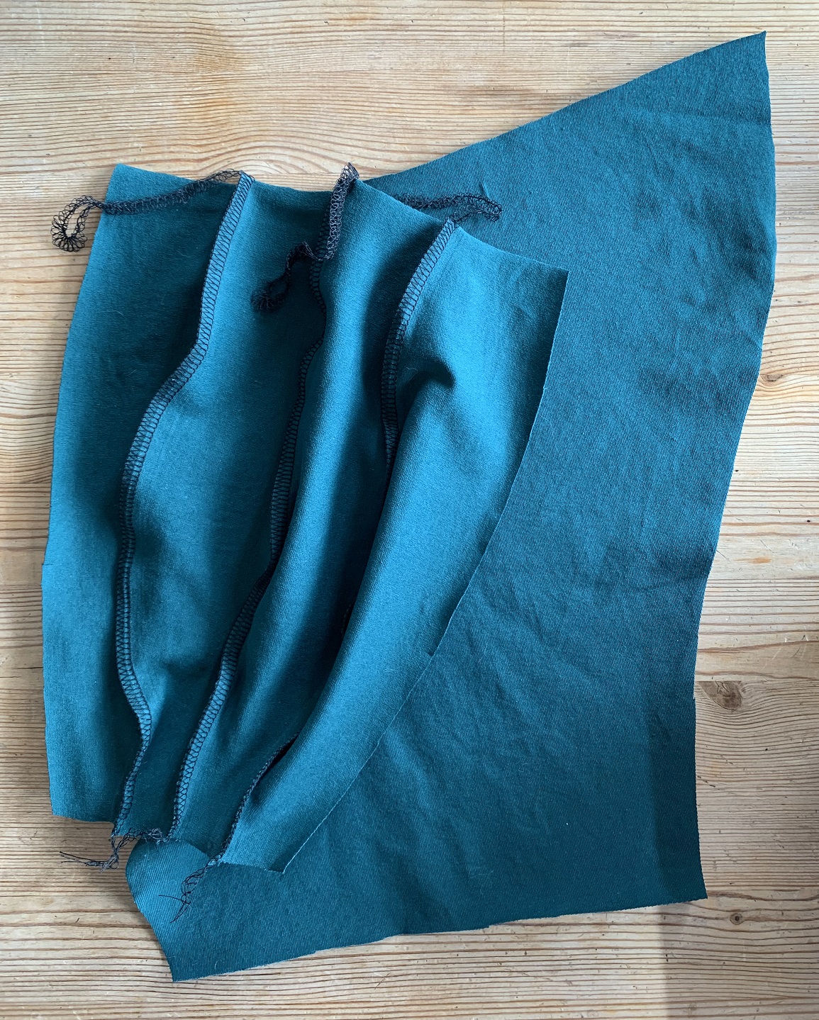 Il ne reste plus qu’à faire les ourlets, à la hauteur qui vous convient (1,5 cm pour moi) et avec le point qui vous convient, tant qu’il est élastique. Ou avec l’aiguille double ou la recouvreuse …