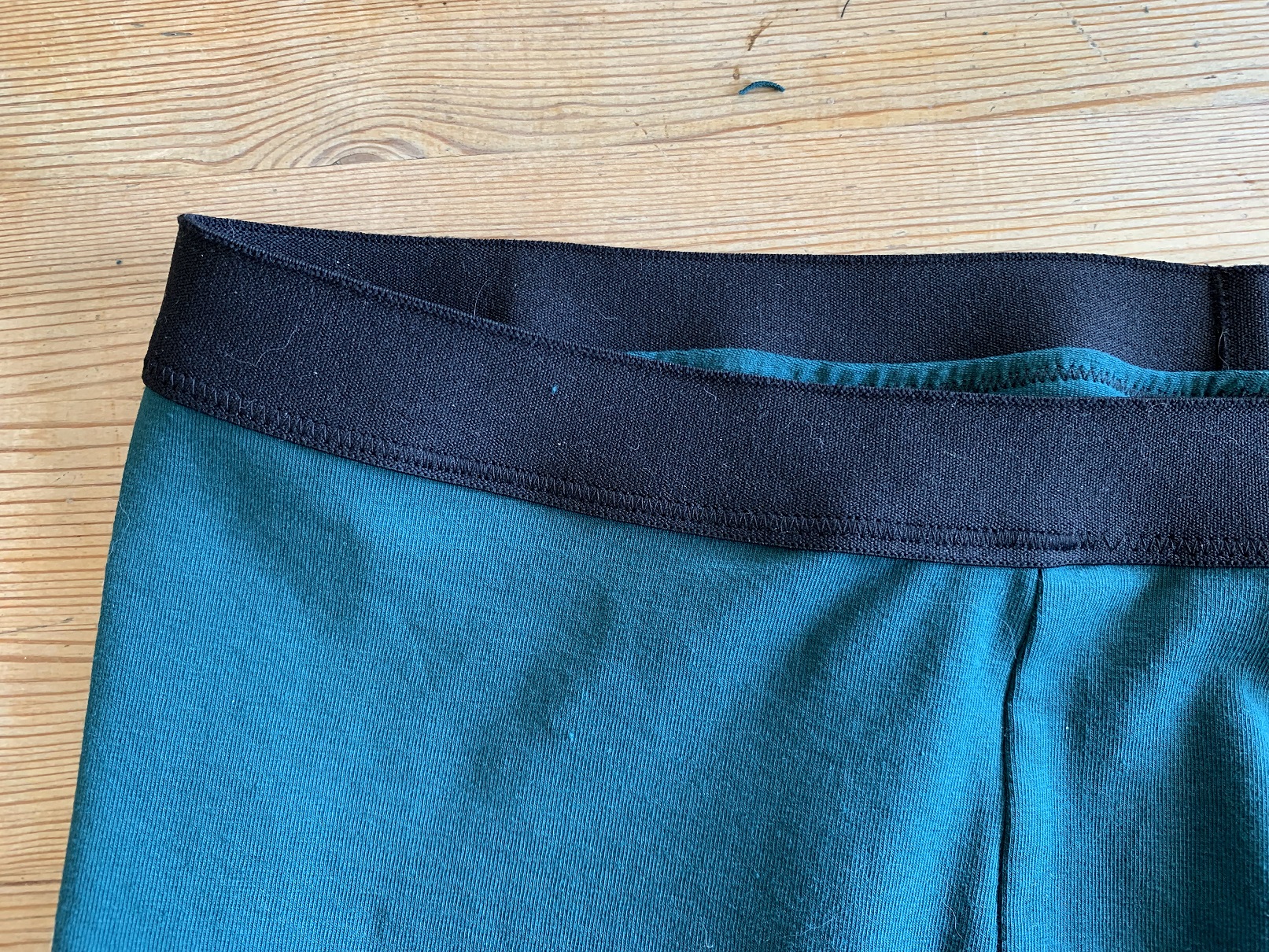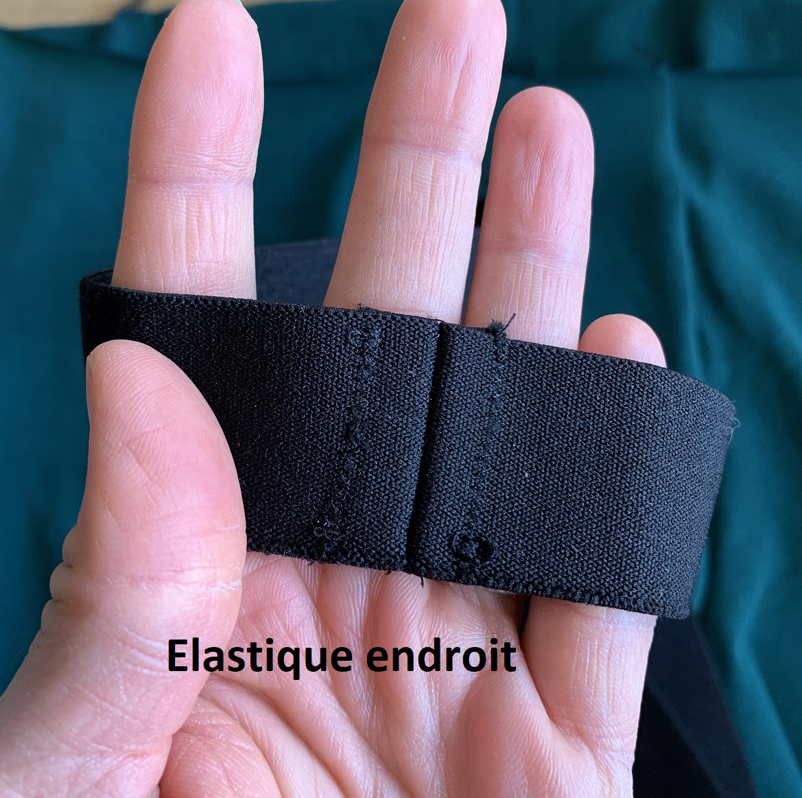 Allez on s’accroche encore un peu pour la couture de l’élastique ! Ce n’est pas si difficile que ça. Testez directement la taille de l’élastique sur le futur porteur du boxer (ou référez-vous au tableau listant le matériel) sans oublier de rajouter une marge de couture puis fermez l’élastique. Chacun sa façon de faire : La Maison Victor fait se chevaucher les deux bouts de l’élastique, moi je préfère coudre endroit contre endroit puis surpiquer les marges:
