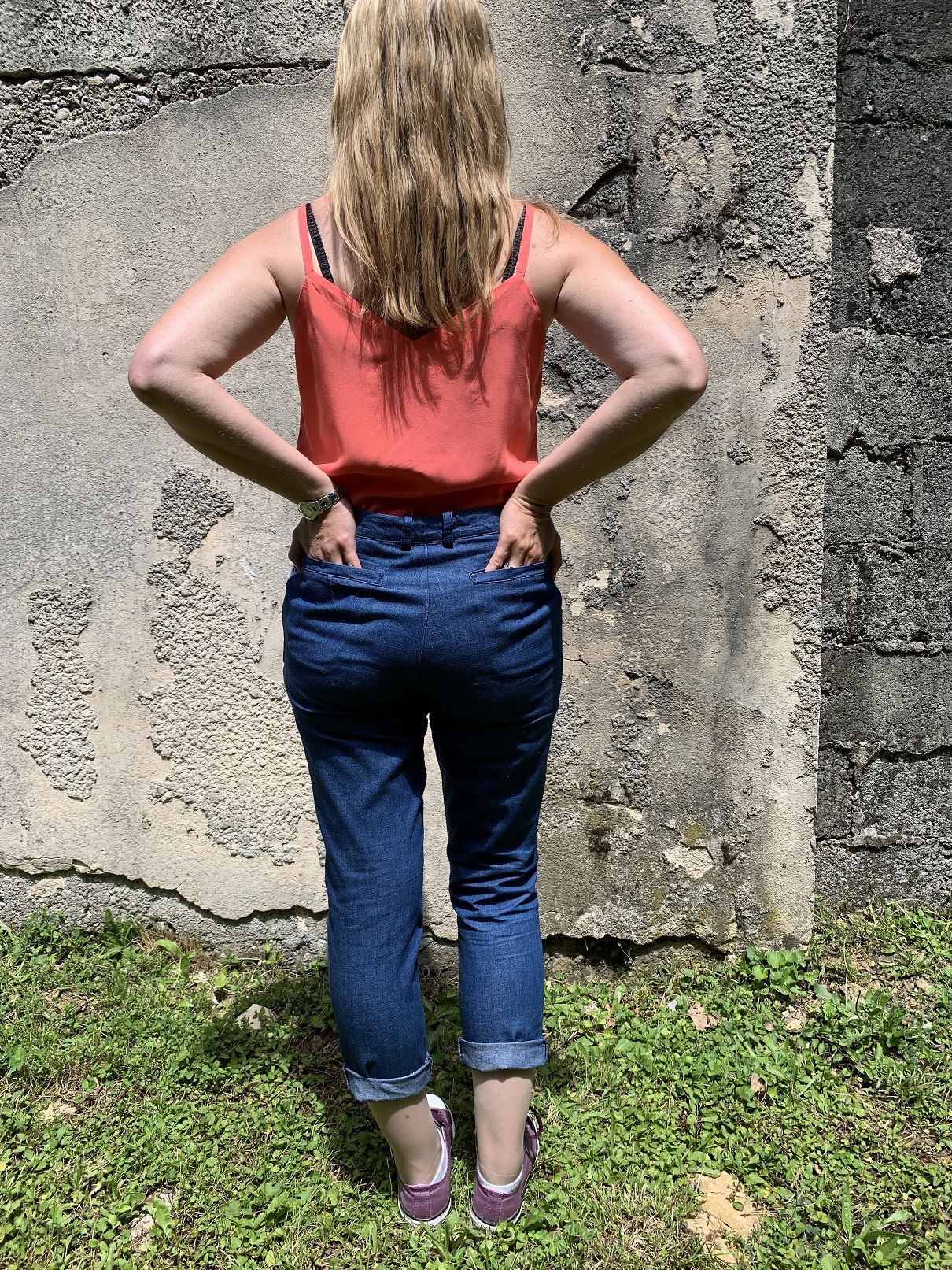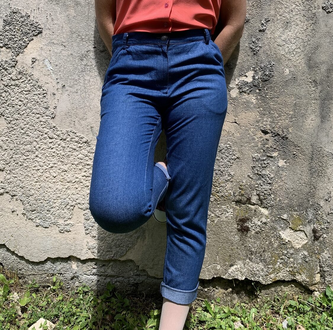 J’ai cousu cette première version en taille 36 pourtant le pantalon était bien trop grand pour moi. J’ai dû raboter entre 1cm et 1,5cm le long des jambes et de la fourche. Peu importe, c’est à ça que servent les toiles ! J’ai donc raboté mon patron en conséquence pour en faire une 2e version :