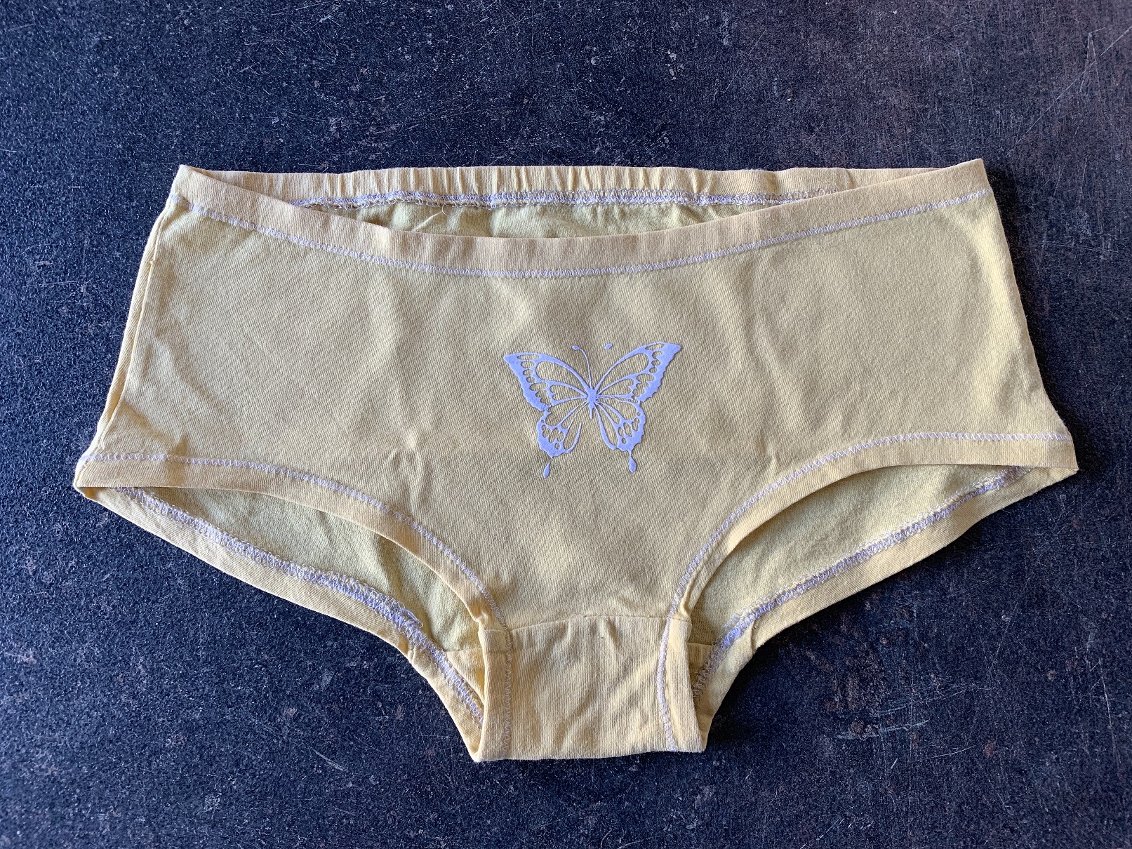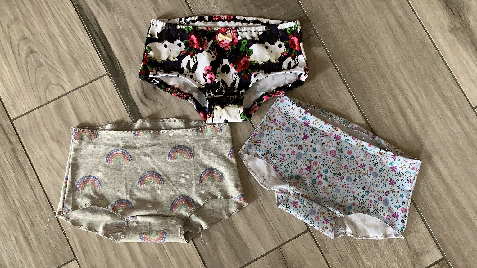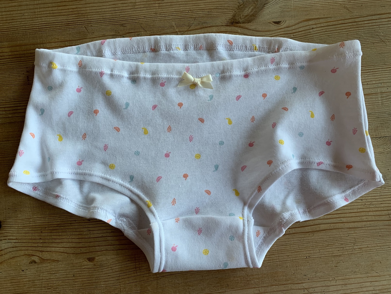 La culotte Patti est un de mes patrons chouchous de chez La Maison Victor. Son large éventail de tailles (de 92 à 152 cm) permet de coudre des culottes à toutes les poulettes de notre entourage ou, comme dans mon cas, de coudre des culottes au fur et à mesure que Biquette grandit. J’ai même dû grader la taille supérieure au 152 cm pour pouvoir continuer à lui en coudre. Biquette trouve ses culottes très confortables et c’est vrai qu’avec sa forme boxer, elle au moins de rentre pas dans les fesses !
