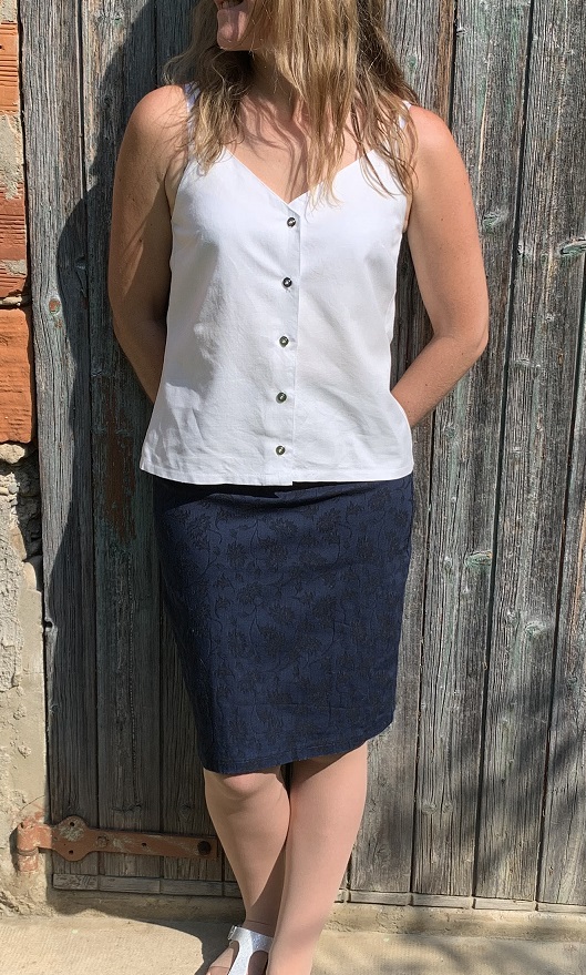 J’ai choisi de réduire la longueur car je suis petite et je préfère les jupes au genou. Je ferai sûrement d’autres versions car je porte mes deux jupes tout le temps !