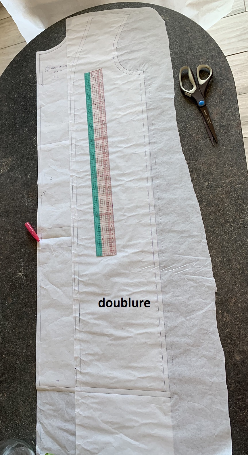 Voici la façon dont j’ai procédé pour patronner la doublure. Je vous rappelle que je ne suis pas une couturière professionnelle et que ma technique n’est donc pas académique.