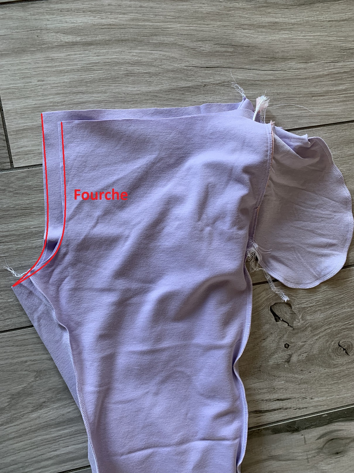Une fois que les deux jambes sont assemblées de façon séparée, il faut insérer une jambe à l’endroit dans l’autre jambe à l’envers jusqu’à ce que la fourche soit correctement alignée, puis piquer celle-ci :