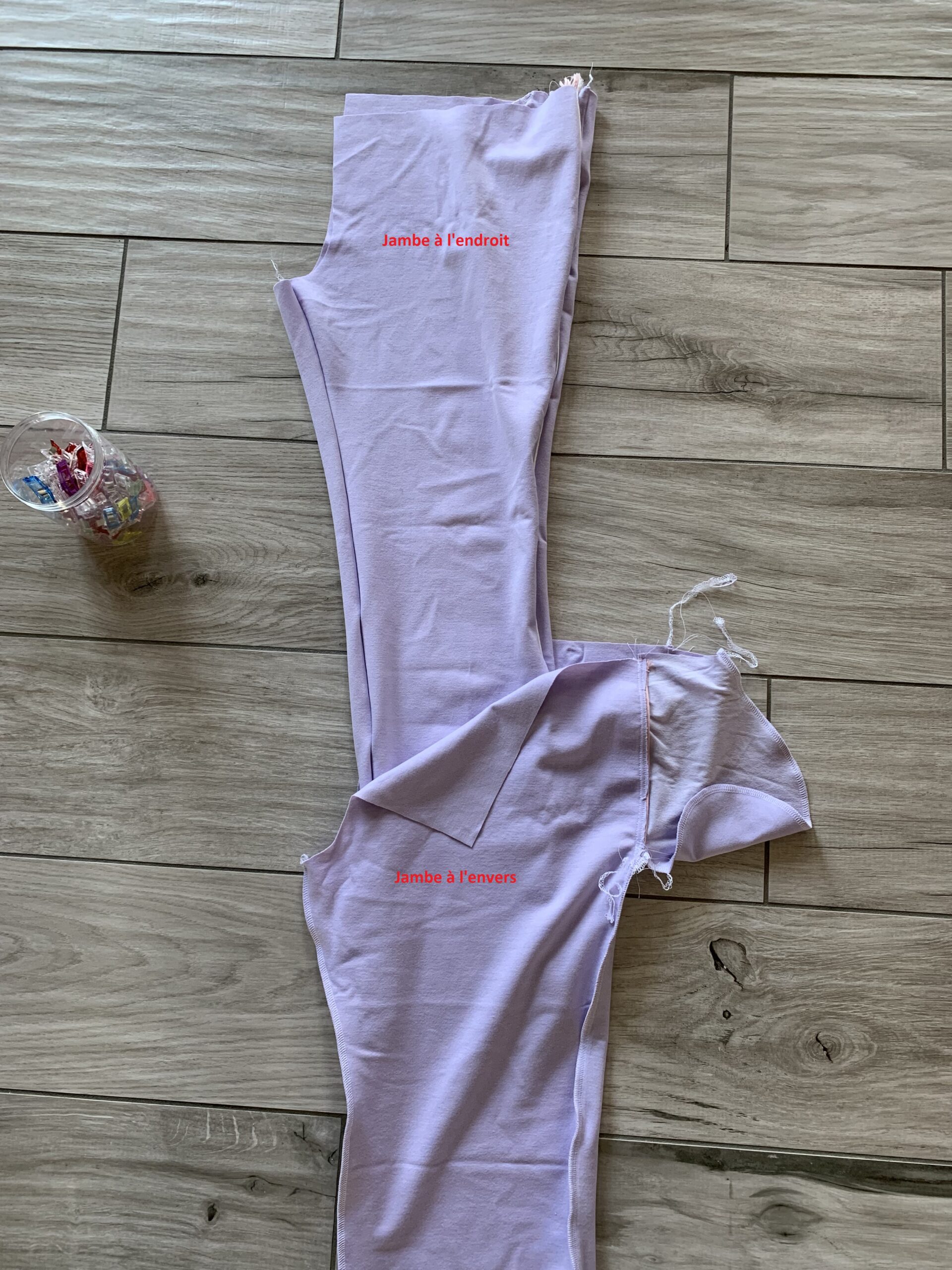 J’ai choisi de sous-piquer les fonds de poches pour que lesdites poches ne ressortent pas constamment. C’est assez simple à faire : une fois la poche cousue endroit contre endroit, on l’ouvre de façon à piquer le fond de poche sur la marge de couture. Une fois la poche rentrée, la sous-piqûre ne se verra plus ; elle n’est toutefois pas obligatoire. Ensuite j’ai commencé à assembler les jambes, une par une :