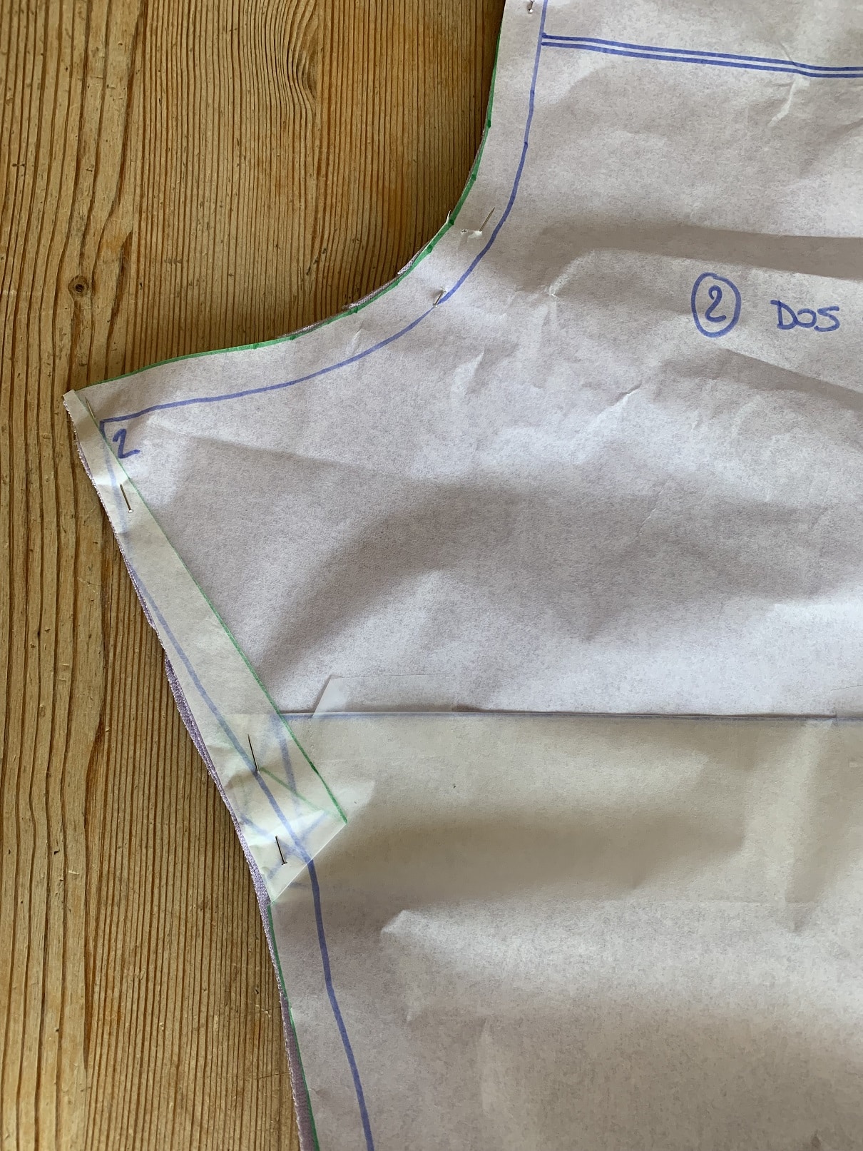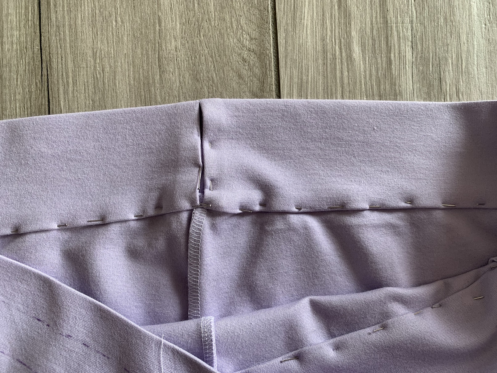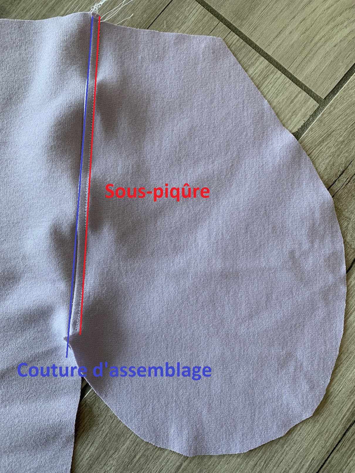 photo 1 ci-dessus : mon jersey étant stretch dans les deux sens, j’ai pu disposer deux fonds de poche à l’horizontale. Attention à bien respecter le droit fil si votre jersey n’est stretch que dans un sens !