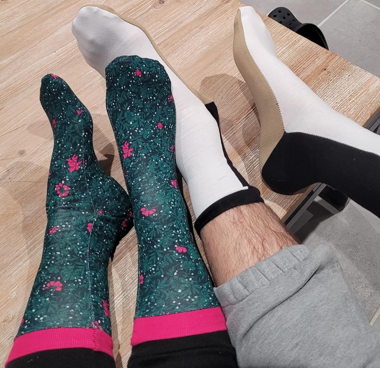 En conclusion, les Sew It Forward Socks sont vraiment sympas à coudre (jonction mise à part) et à porter. J’imagine bien organiser une soirée pyjama pour Biquette et coudre des chaussettes rigolotes pour les copines. Monsieur ne portera peut-être pas les siennes au travail mais il a apprécié de les porter une soirée à la maison. Quant à moi, je m’en referai sûrement une ou deux paires, peut-être en jersey blanc, plus basses et avec une bande de dentelle à la cheville. Un patron sympa, à tester !