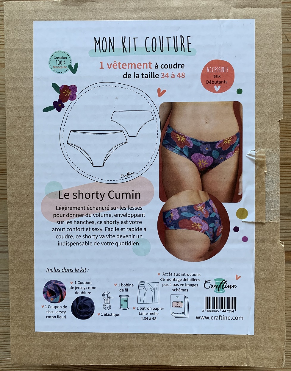 C’est en passant un jour par hasard dans un magasin Centrakor que je suis tombée sur les patrons et les box Craftine. Je connaissais déjà cette marque mais je n’avais encore jamais testé leurs patrons. J’ai donc pris la box du shorty Cumin ainsi qu’un autre patron pour lequel je rédigerai un article prochainement.
