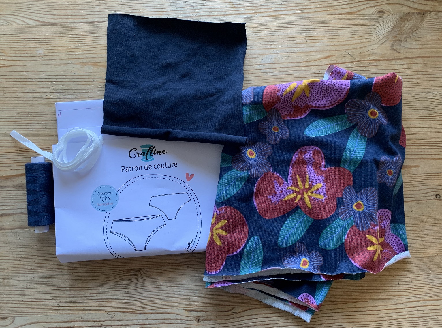 La box contient tout le matériel nécessaire à la réalisation du shorty : tissu principal, tissu doublure, élastique, fil et patrons. Les instructions sont à télécharger sur le site de Craftine avec un code présent sur la planche patron. La box coute 14,99 euros.