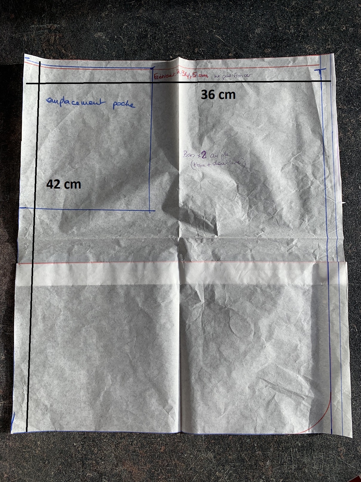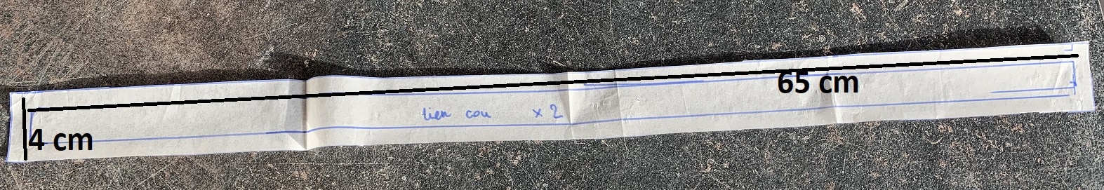 Voilà maintenant l’étape de création. J’ai coupé mon tissu selon les mesures suivantes :
